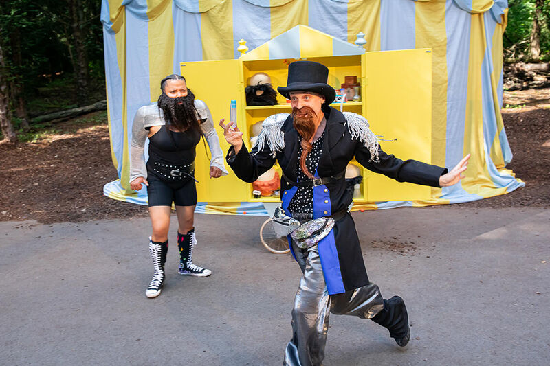 "Het trio, met hun uiteenlopende en ook vaak veranderende baarden (naast de woeste zwarte baard van het eerste uur, een bruinachtige langere sik en vervolgens een snorrebaardige variant), vormen steeds wisselende bondjes. Ze bieden tegen elkaar op met goocheltrucs, baardlengtes, dansjes en verbazen niet alleen hun publiek met hun fratsen maar ook zichzelf, wat erin resulteert dat men zich peinzend in de baard krabt (met een geweldige mimiek)."