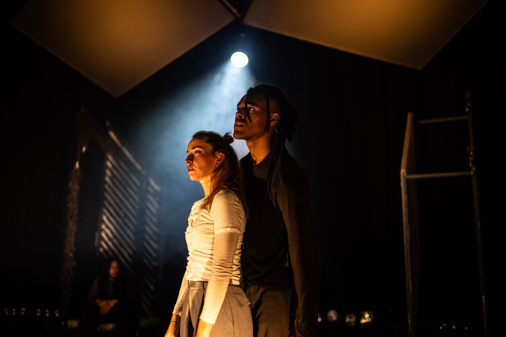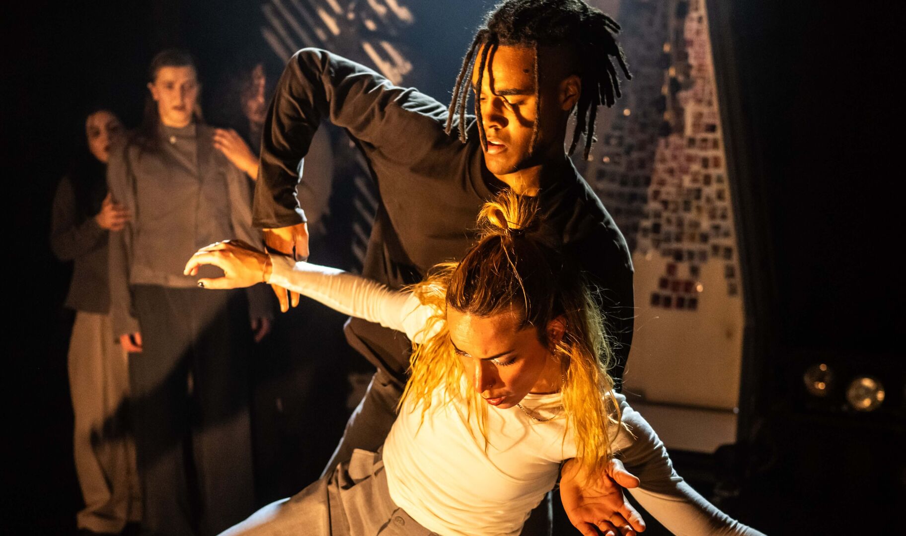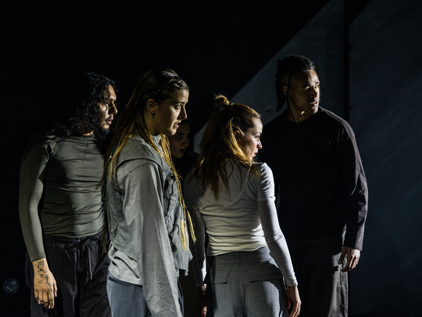 Een performer spreekt vanuit een radiobooth, geïnspireerd op ‘hate radio’, een Rwandese zender die propaganda en haat verspreidde. De dansers reageren fysiek op de impact van deze woorden. Hun lichamen worden het speelveld van machtsstructuren, waarin uitsluiting en verzet zich afwisselen. Grime en Trap vormen de muzikale basis van XANUUN: genres die de frustratie en energie van een generatie uitdrukken en de voorstelling een rauwe, urgente dynamiek geven.